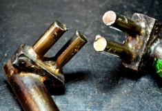| 10年前、京都市街地から車で一時間。山あいに建つプレハブ小屋の中で、一人孤独に作品を作っていました。壁も天井も薄くて所々むき出しになっていた室内は、気温が夏場は45度を超えて、冬には-7度になりました。夏の暑い日に溶接作業をしていると、汗で作業着がビショビショに濡れてしまい汗の水分を伝って全身が感電することがありました。また、冬の寒い日は、あらゆる隙間から冷気が入り込み、室内に置いているペットボトルの水が凍る日もありました。8時間会社勤めした後、アトリエへの移動中に車内で食事を済ませて、9時間アトリエで制作、1日合計17時間1ヶ月当たり500時間仕事していた事を覚えています。 |
