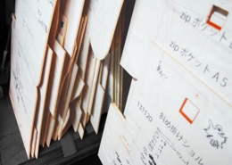 | その後、瞬く間に製作が間に合わなくなるくらい鞄が売れ始めました。大丸百貨店全店舗での取り扱いも決まりました。何もかもトントン拍子に、うまくいきだしました。生活費を稼ぐ為に勤めていた会社も思い切って辞めて、鞄を作る事が本業になりました。その後、結婚し夫婦二人体制になったことで、生産量販売量も2倍以上になります。京都西陣にアトリエを移し、小さな店舗を構えます。パリ・コレクションからも招待されるようになり5回参加できました。パリコレに参加して一番自信になったことは、世界のトップデザイナーと言われる人達のコレクションと一緒に展示会場に並べて見比べたとき、onomasatoのコレクションの方がクリエイティビティに溢れ世界観が明確であると感じた事でした。その後、パリコレクションに参加した実績などが幸いしてか、今まで困難だった素材のメーカーさん探しがうまくいき始めます。このころに、国内自動車企業系列のあるメーカーさんと出会いました。そのおかげで軽量シリーズのための理想の素材が誕生しました。ポリカーボネイトを材料にする事で思い通りの質感と耐久性が実現できるようになったのです。少しずつですが、海外からのお客様もお店に来てくださるようになっています。小野正人個人の目標は、昨年、子供も授かる事ができたのを区切りにこの10年間で満たされました。こんな幸せな世界に導いてくれた“カラス”に対して、まさに感恩報謝の極みです。 |
